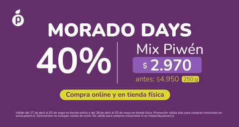 Piwén es una marca chilena de frutos secos y alimentos naturales, con calidad exportadora y altos estándares de higiene y frescura. Desde 2007 acercamos productos certificados al consumidor chileno, en tiendas propias y online.